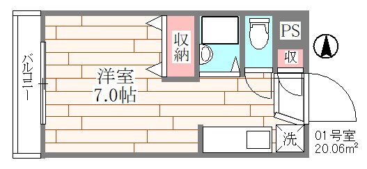 | 間取り | 1K(洋7.0) | 築年月(築年数) | 1985年8月(築40年8ヶ月) |