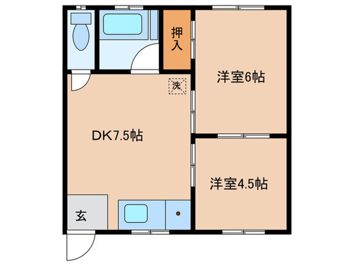 | 間取り | 2DK(洋6 洋4.5 DK7.5) | 築年月(築年数) | 1980年6月(築45年5ヶ月) |