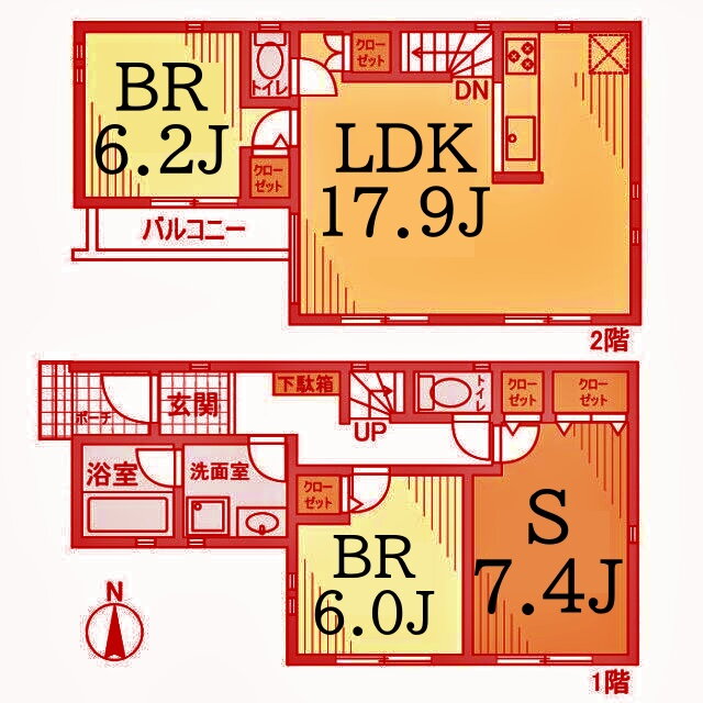 | 間取り | 2SLDK(洋6.2 洋6.0 LDK17.9 納戸 7.4) | 築年月(築年数) | 2018年5月(築7年8ヶ月) |