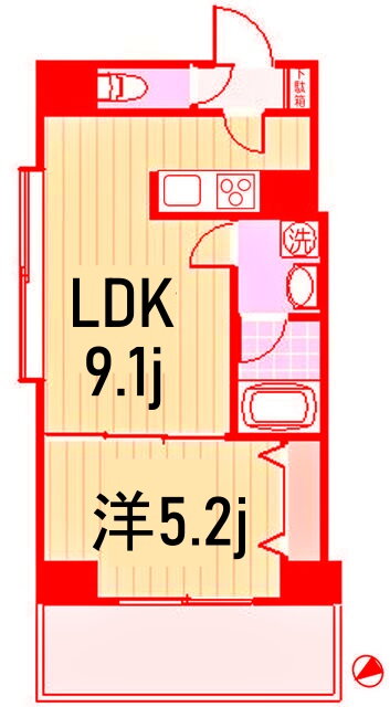 1LDK(洋5.2 LDK9.1) |