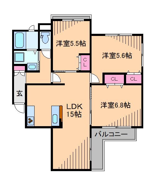 | 間取り | 3LDK(洋6.8 洋6.6 洋5.5 LDK15) | 築年月(築年数) | 1987年9月(築38年4ヶ月) |