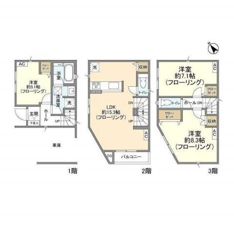 | 間取り | 3LDK(洋8.3 洋7.1 洋5.1 LDK15.3) | 築年月(築年数) | 2023年2月(築2年11ヶ月) |