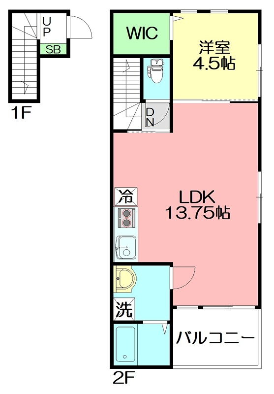 | 間取り | 1LDK(洋4.5 LDK13.7) | 築年月(築年数) | 2023年3月(築2年10ヶ月) |