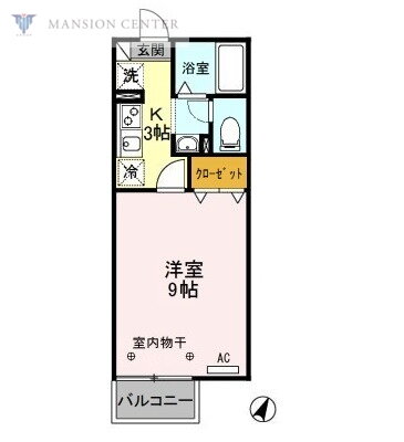 | 間取り | 1K(洋9 K3) | 築年月(築年数) | 2004年9月(築21年3ヶ月) |