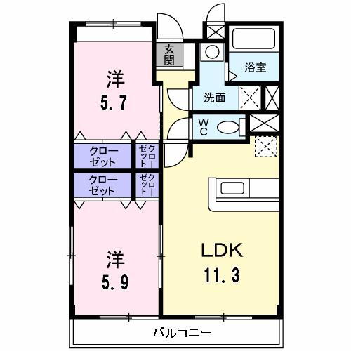 | 間取り | 2LDK(洋5.9 洋5.7 LDK11.3) | 築年月(築年数) | 2001年12月(築24年) |