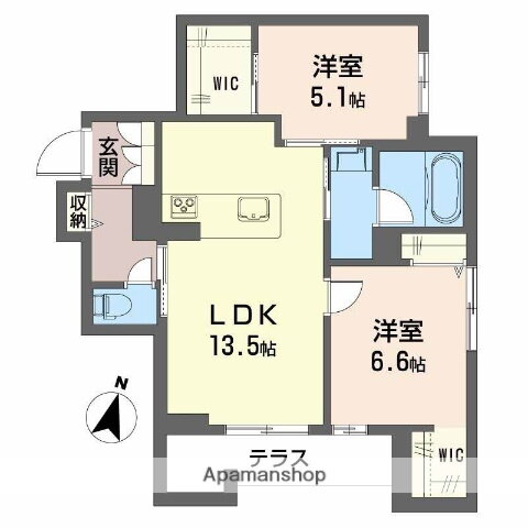 | 間取り | 2LDK(洋6.6 洋5.1 LDK13.5) | 築年月(築年数) | 2026年4月 新築 |