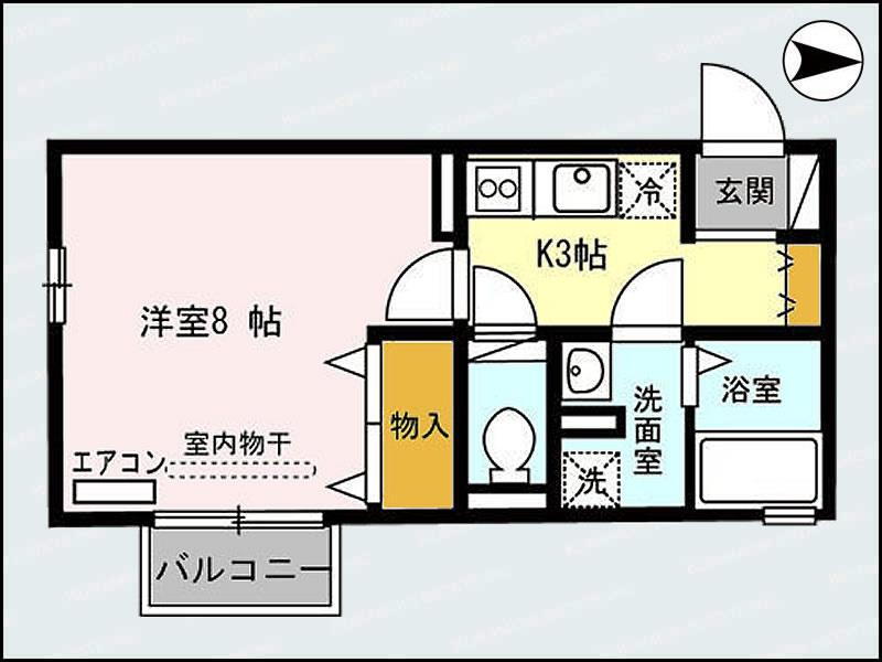 | 間取り | 1K(洋8.3 K3) | 築年月(築年数) | 2008年9月(築17年4ヶ月) |