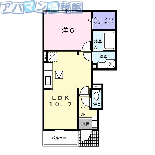| 間取り | 1LDK(洋6 LDK10.7) | 築年月(築年数) | 2006年6月(築19年6ヶ月) |