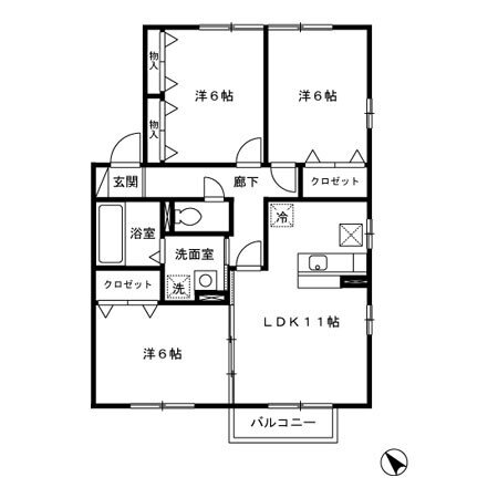 | 間取り | 3LDK(洋6 洋6 洋6 LDK11) | 築年月(築年数) | 2006年11月(築19年1ヶ月) |