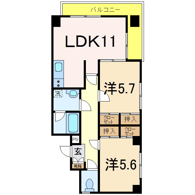| 間取り | 2LDK(洋5.7 洋5.6 LDK11) | 築年月(築年数) | 2001年9月(築24年3ヶ月) |