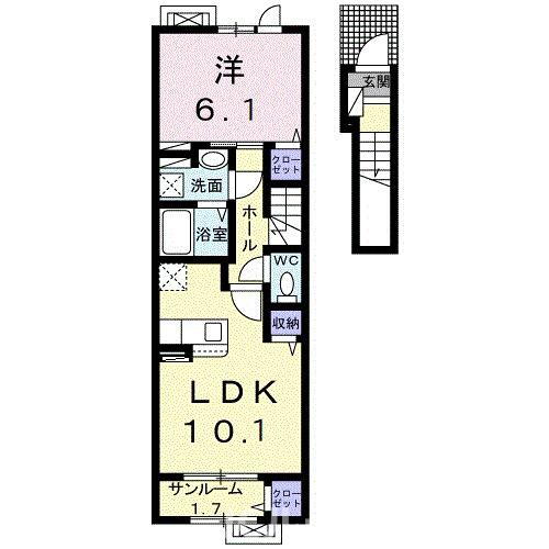 1LDK(洋6.1 LDK10.1 サンルーム 1.7) |