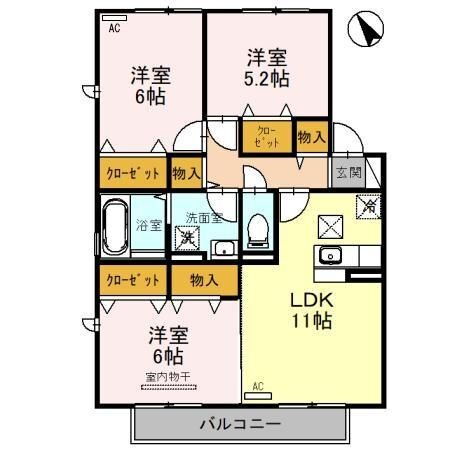 3LDK(洋6.00 洋6.00 洋5.20 LDK11.00) |