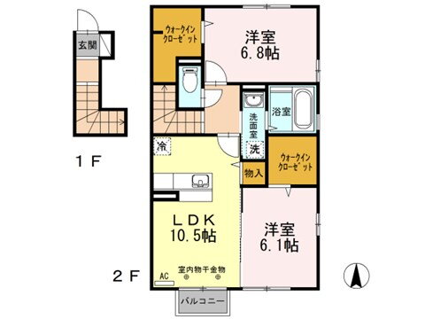 2LDK(洋6.8 洋6.1 LDK10.5) |