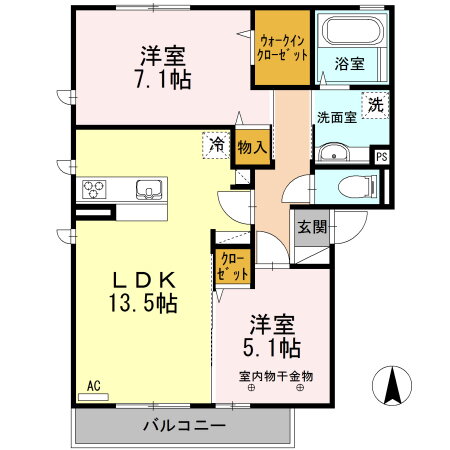 2LDK(洋7.1 洋5.1 LDK13.5) |