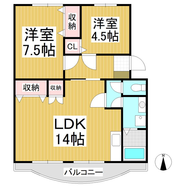 2LDK(洋7.5 洋4.5 LDK14) |