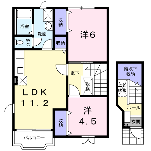 | 間取り | 2LDK(洋6 洋4.5 LDK11.2) | 築年月(築年数) | 1999年9月(築26年3ヶ月) |