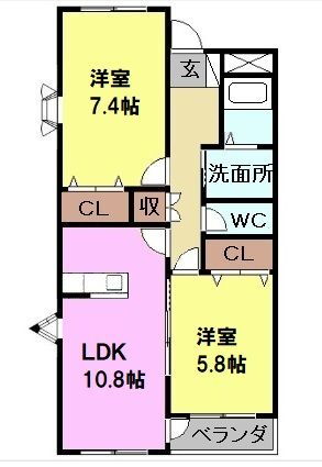 2LDK(洋7.40 洋5.80 LDK10.80) |