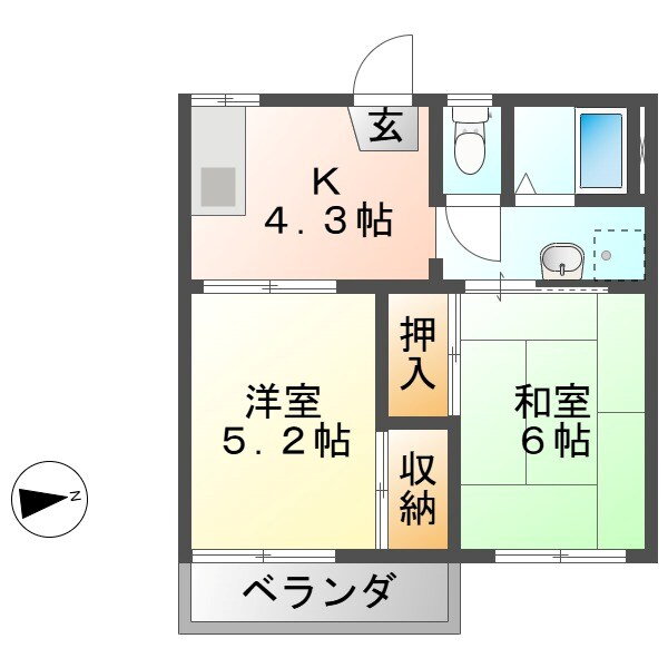 | 間取り | 2K(和6 洋5.2 K4.3) | 築年月(築年数) | 1990年2月(築35年10ヶ月) |