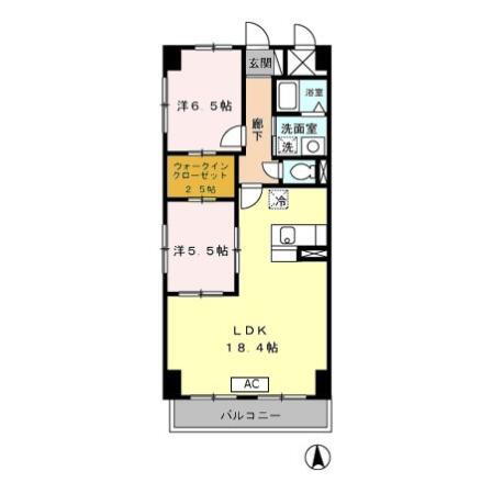 2LDK(洋6.5 洋5.5 LDK18.4) |