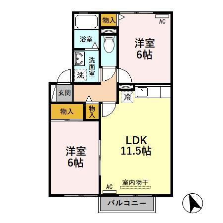 | 設備 | 冷房・暖房・エアコン・バルコニー・バス・トイレ別・トイレ・収納スペース・洗濯機置場・洗面所・BS端子・フローリング・駐輪場・クローゼット・物置・駐車場2台分・専用庭・プロパンガス・浴トイレ別・洗面所独立・コンロ2口以上・シューズボックス・インターネット対応・室内洗濯機置き場 | ||||