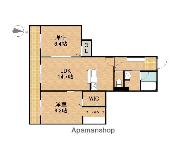 | 間取り | 2LDK(洋9.2 洋6.4 LDK14.7) | 築年月(築年数) | 2024年8月(築1年5ヶ月) |