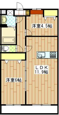 | 間取り | 2LDK(洋6.0 洋4.5 LDK11.9) | 築年月(築年数) | 2016年4月(築9年9ヶ月) |