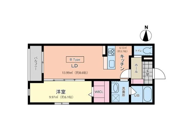 | 間取り | 1LDK(洋6.1 LDK12.3) | 築年月(築年数) | 2024年8月(築1年5ヶ月) |