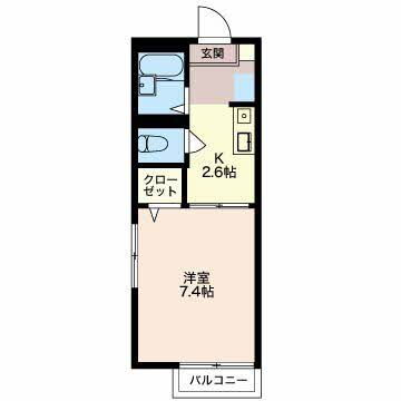 | 間取り | 1K(洋7.4 K2.6) | 築年月(築年数) | 2002年8月(築23年5ヶ月) |