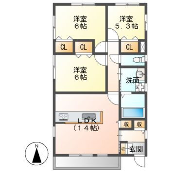 3LDK(洋6 洋6 洋5.3 LDK14) |