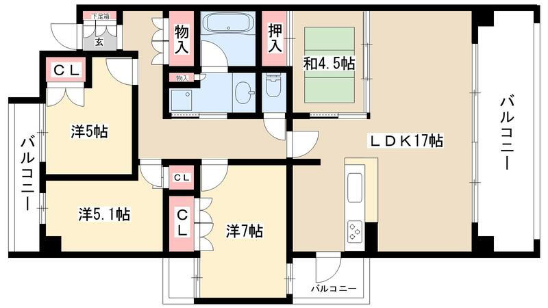 | 間取り | 4LDK(和4.5 洋7 洋5.1 洋5 LDK17) | 築年月(築年数) | 2007年3月(築18年10ヶ月) |