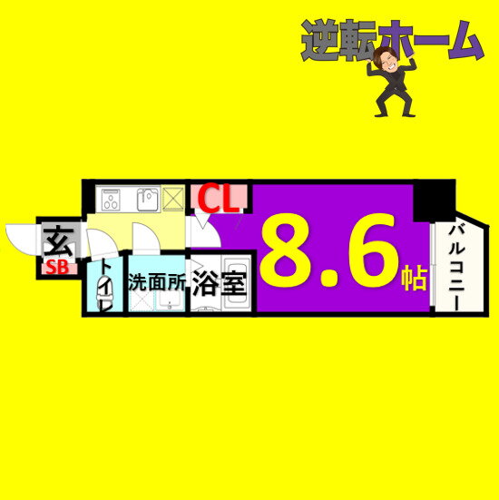 | 間取り | 1K(洋8.6) | 築年月(築年数) | 2021年2月(築4年9ヶ月) |