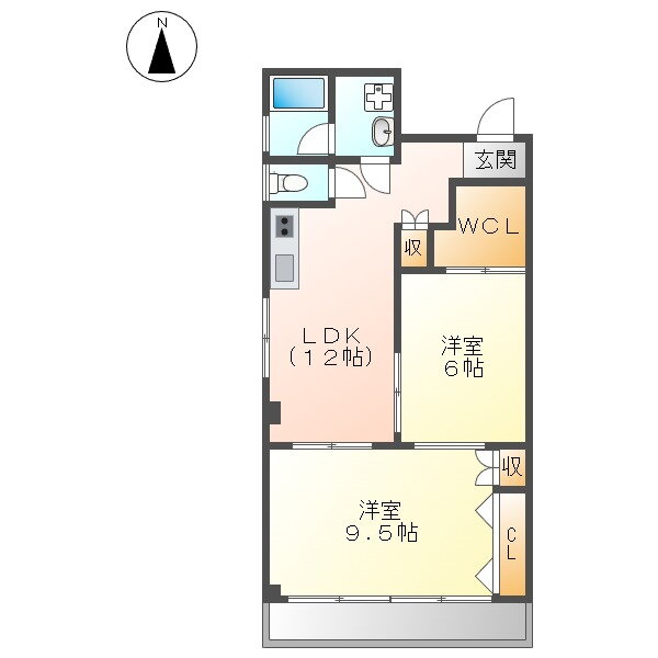 2LDK(洋9.5 洋6.0 LDK12.0) |