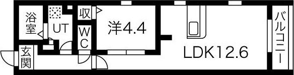 | 間取り | 1LDK(洋4.4 LDK12.6) | 築年月(築年数) | 2019年1月(築6年12ヶ月) |