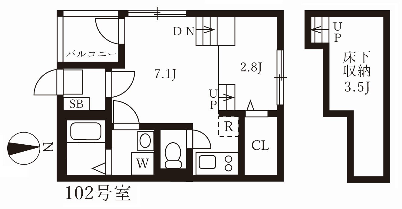 | 間取り | 1DK(洋2.8 DK7.1K2.0) | 築年月(築年数) | 2018年10月(築7年3ヶ月) |