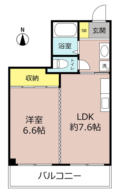 | 間取り | 1DK(洋6.6 DK7.6) | 築年月(築年数) | 1996年3月(築29年9ヶ月) |