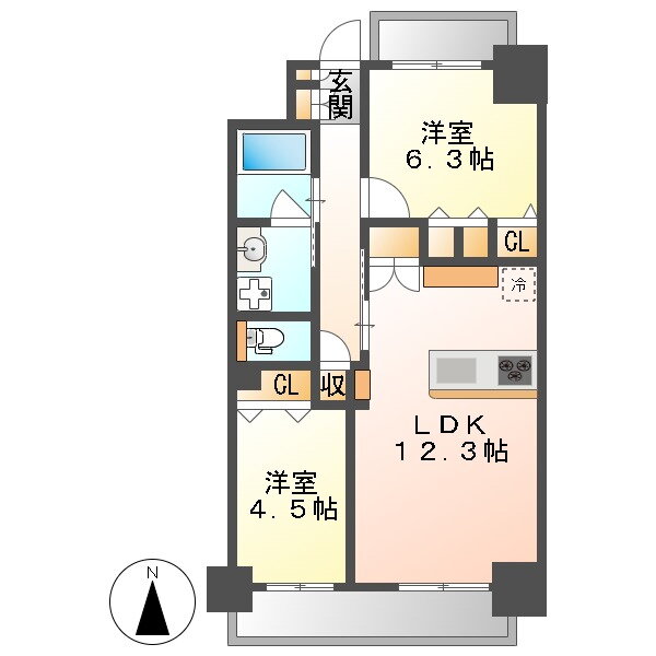 | 間取り | 2LDK(洋6.3 洋4.5 LDK12.3) | 築年月(築年数) | 2025年5月 新築 |