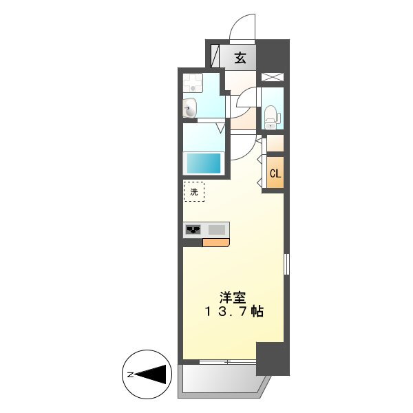 ワンルーム(洋13.7) |