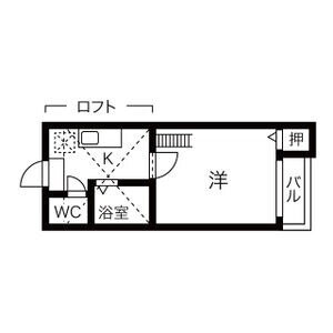 | 間取り | 1K(洋6 ロフト 5) | 築年月(築年数) | 2006年5月(築19年8ヶ月) |