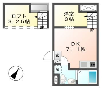 1DK(洋3 DK7.1 ロフト 3.2) |