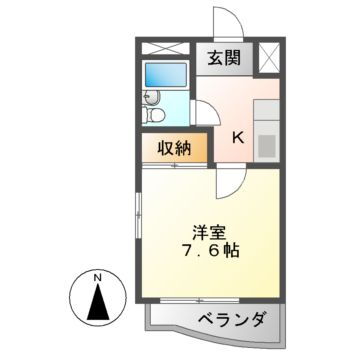 | 間取り | 1K(洋7.6 K1.5) | 築年月(築年数) | 1989年5月(築36年8ヶ月) |