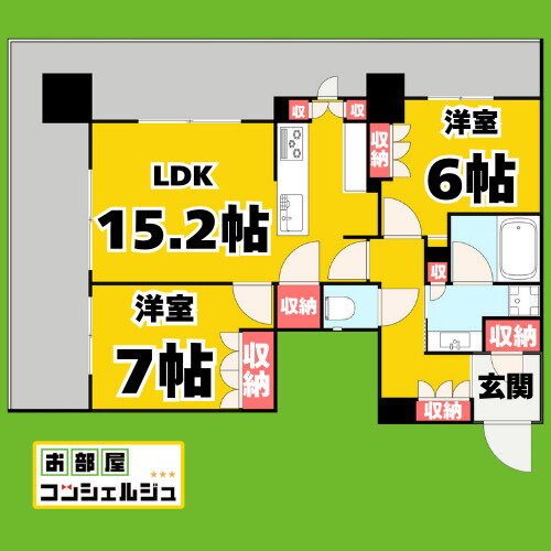 | 間取り | 2LDK(洋7.0 洋6.0 LDK15.2) | 築年月(築年数) | 2023年1月(築3年4ヶ月) |
