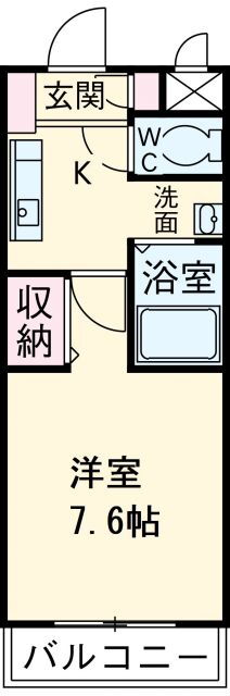 | 間取り | 1K(洋7.6 K2.6) | 築年月(築年数) | 2000年3月(築25年10ヶ月) |