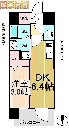 | 間取り | 1DK(洋3.0 DK6.4) | 築年月(築年数) | 2022年11月(築3年2ヶ月) |