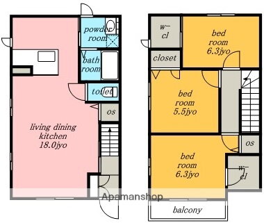 3LDK(洋6.3 洋6.3 洋5.5 LDK18) |