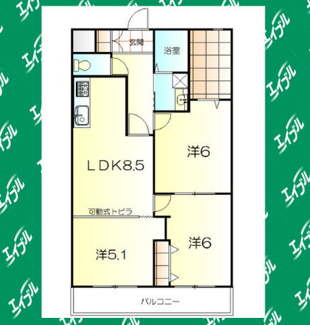 3LDK(洋6.0 洋6.0 洋5.1 LDK8.5) |