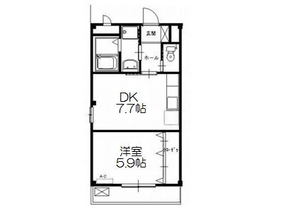 | 間取り | 1DK(洋5.9 DK7.7) | 築年月(築年数) | 2003年7月(築22年6ヶ月) |