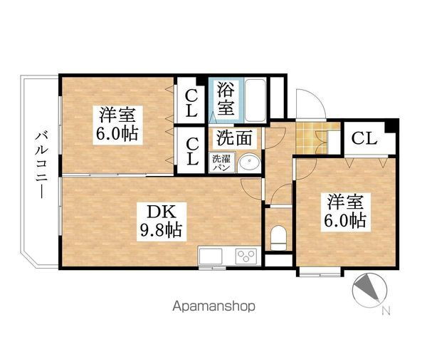 | 間取り | 2DK(洋6 洋6 DK9.8) | 築年月(築年数) | 2004年3月(築21年10ヶ月) |
