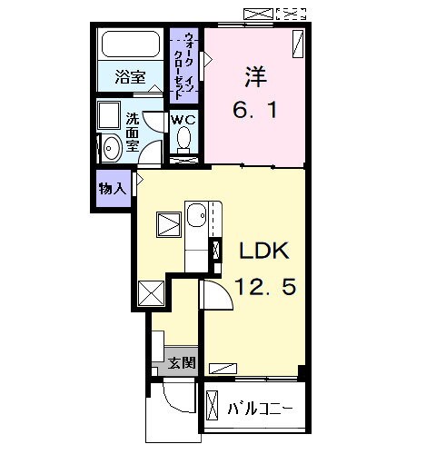 | 間取り | 1LDK(洋6.1 LDK12.5) | 築年月(築年数) | 2024年3月(築1年10ヶ月) |
