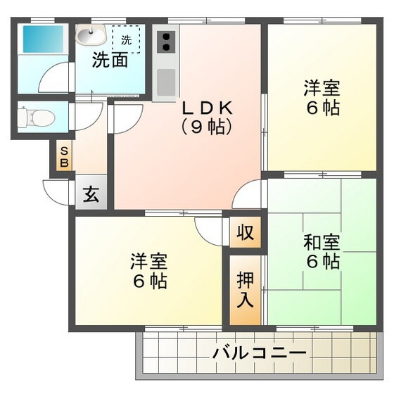 | 間取り | 3LDK(和6 洋6 洋6 LDK9) | 築年月(築年数) | 1983年1月(築42年12ヶ月) |