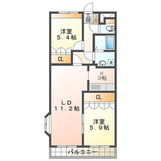 | 間取り | 2LDK(洋5.9 洋5.4 LDK14.2) | 築年月(築年数) | 2004年3月(築21年10ヶ月) |